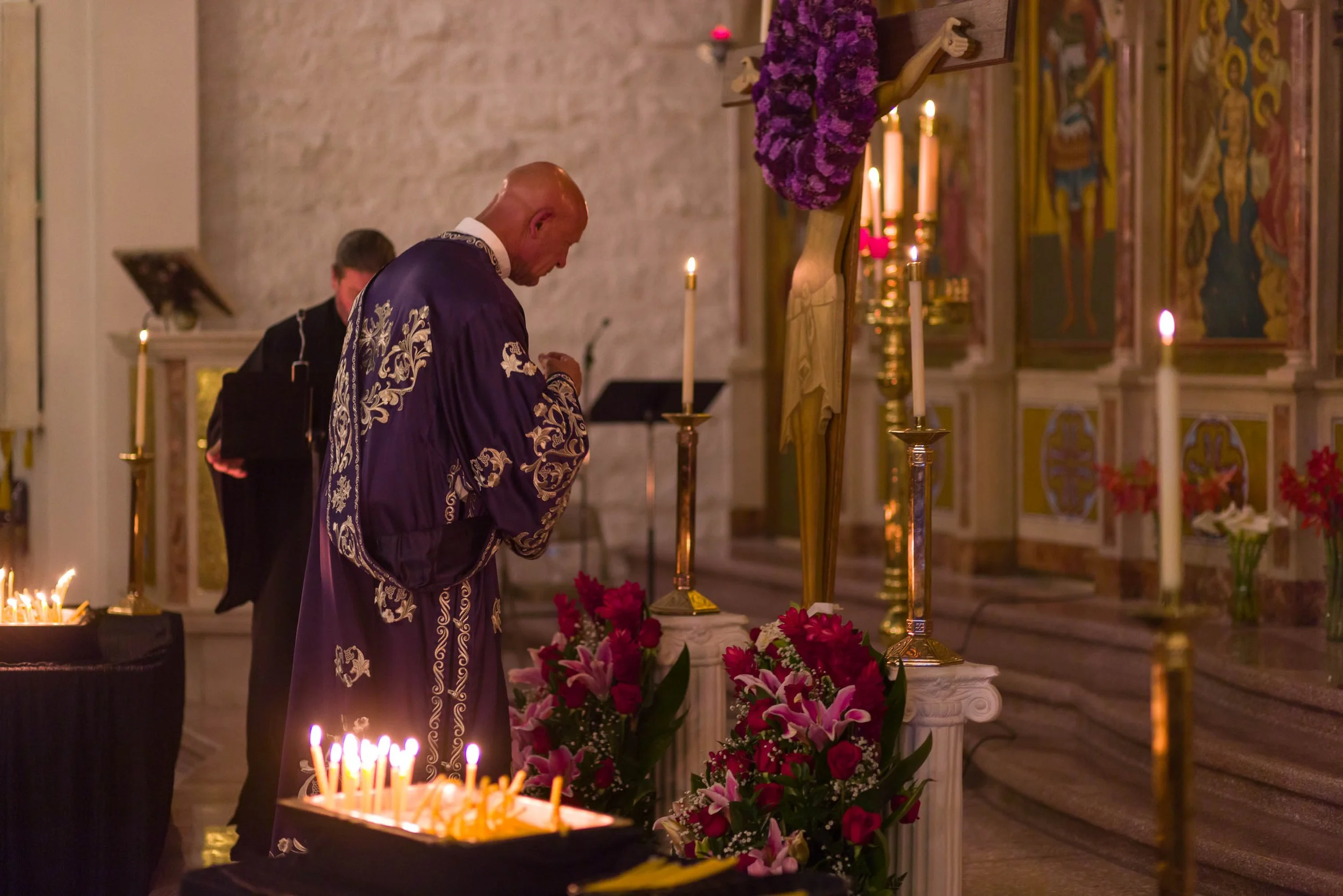 As a continuation from the morning Mystical Supper service, we come to a service called the 12 Gospels. As previously said, there is a main timeline taking place within the services, but they overlap each other and go deeper into focus within each. There are 12 gospel portions read, each from the 4 gospel accounts. After each reading, a candle is lit in the front. The readings cover in entirety Jesus speaking with His disciples in the Upper Room, the garden, His betrayal by Judas, His arrest, trial and crucifixion.